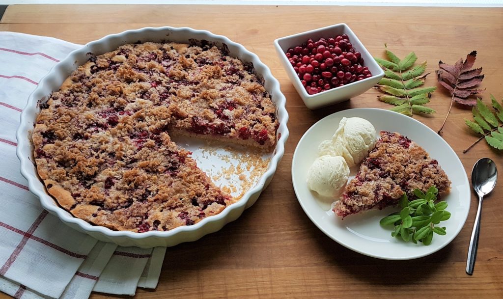 Puolukka ja kinuski ovat vastustamaton yhdistelmä. Kinuski taittaa sopivasti puolukan kirpeyttä. Tämä gluteeniton puolukka-kinuskipiirakka on nopea ja helppo valmistaa. Täytteeseen tulee valmista kinuski- ja vaniljakastiketta. Lopputulos on takuuvarmaa tavaraa – slurps!