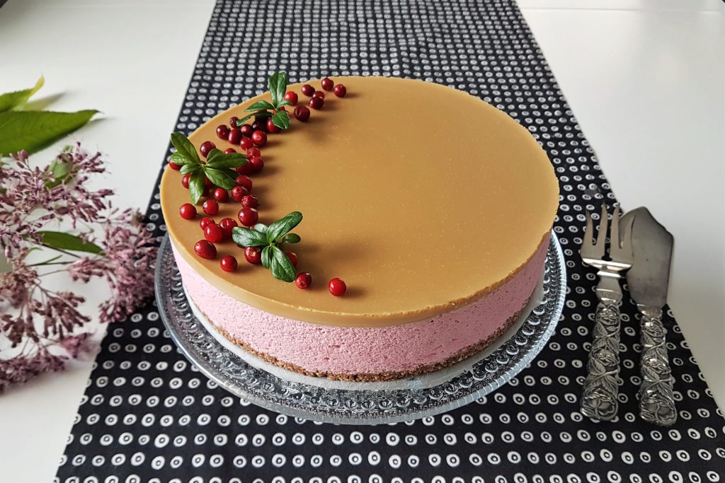 Kuluvan syksyn suosikkini on gluteeniton puolukka-kinuskijuustokakku, josta tuli Instagram-tililläni tykätyin kuvani kautta aikojen. Kakku on helppo tehdä, kaunis ja makoisa. Kakun pohjaan kokeilin Pirkan gluteenittomia kaura-suklaapaloja, mutta voit tehdä pohjan myös gluteenittomista kekseistä. Kinuskikerros hyydytetään liivateella. Helppoa kuin heinän teko.