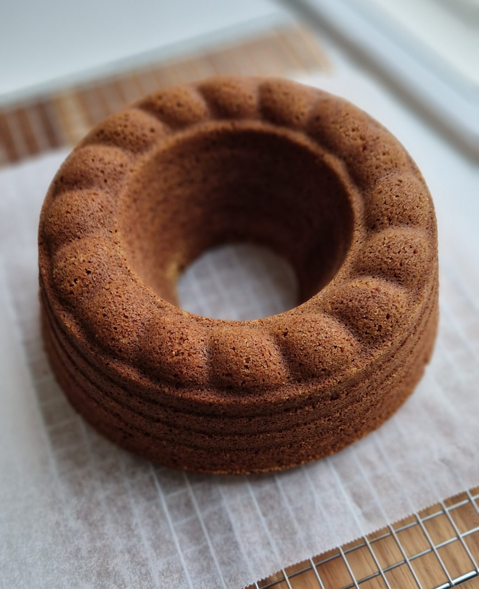 Arabialaisesta maustekakusta tuli tosi muhkea. Kannattaakin varata iso kakkuvuoka, vähintään 2-litrainen. Kakun on hyvä antaa jäähtyä ennen kuorruttamista.