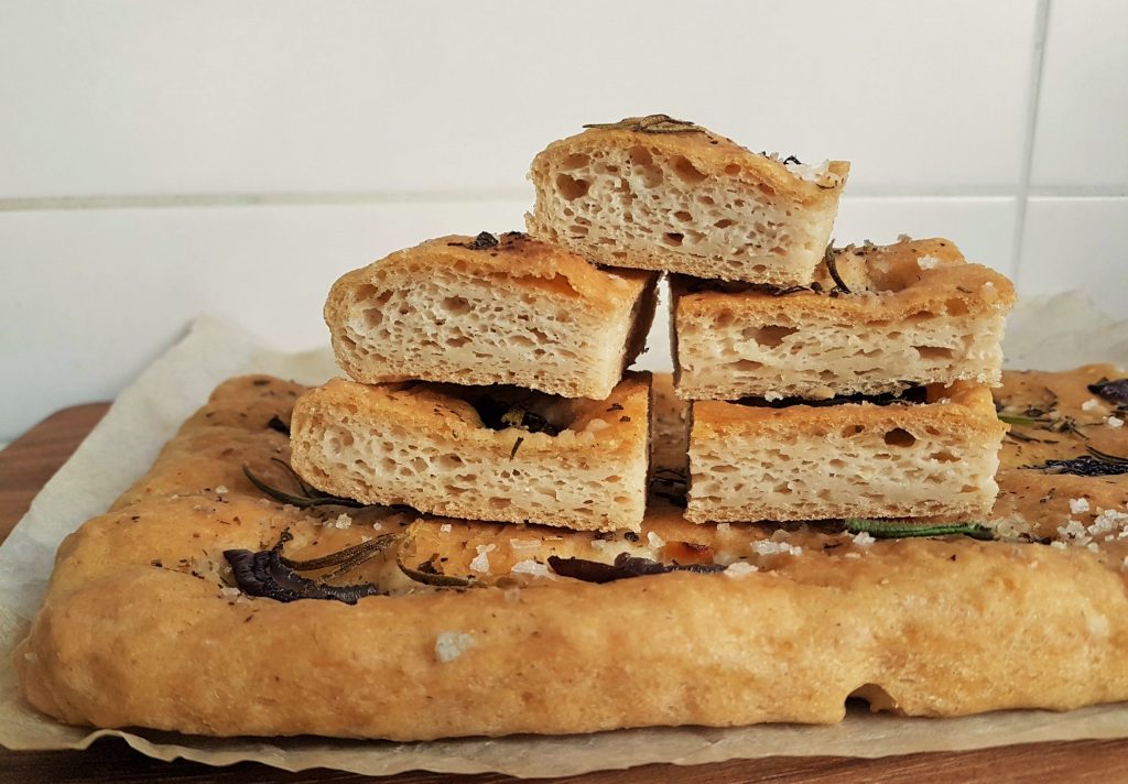 Focaccia on parhaimmillaan tuoreena. Se sopii sellaisenaan väli- ja iltapalaksi tai keiton lisukkeeksi. Gluteenittomat hiivataikinaleivonnaiset vanhenevat nopeasti, joten ne kannattaa syödä päivän parin sisällä tai pakastaa osa leivonnaisesta heti tuoreeltaan.