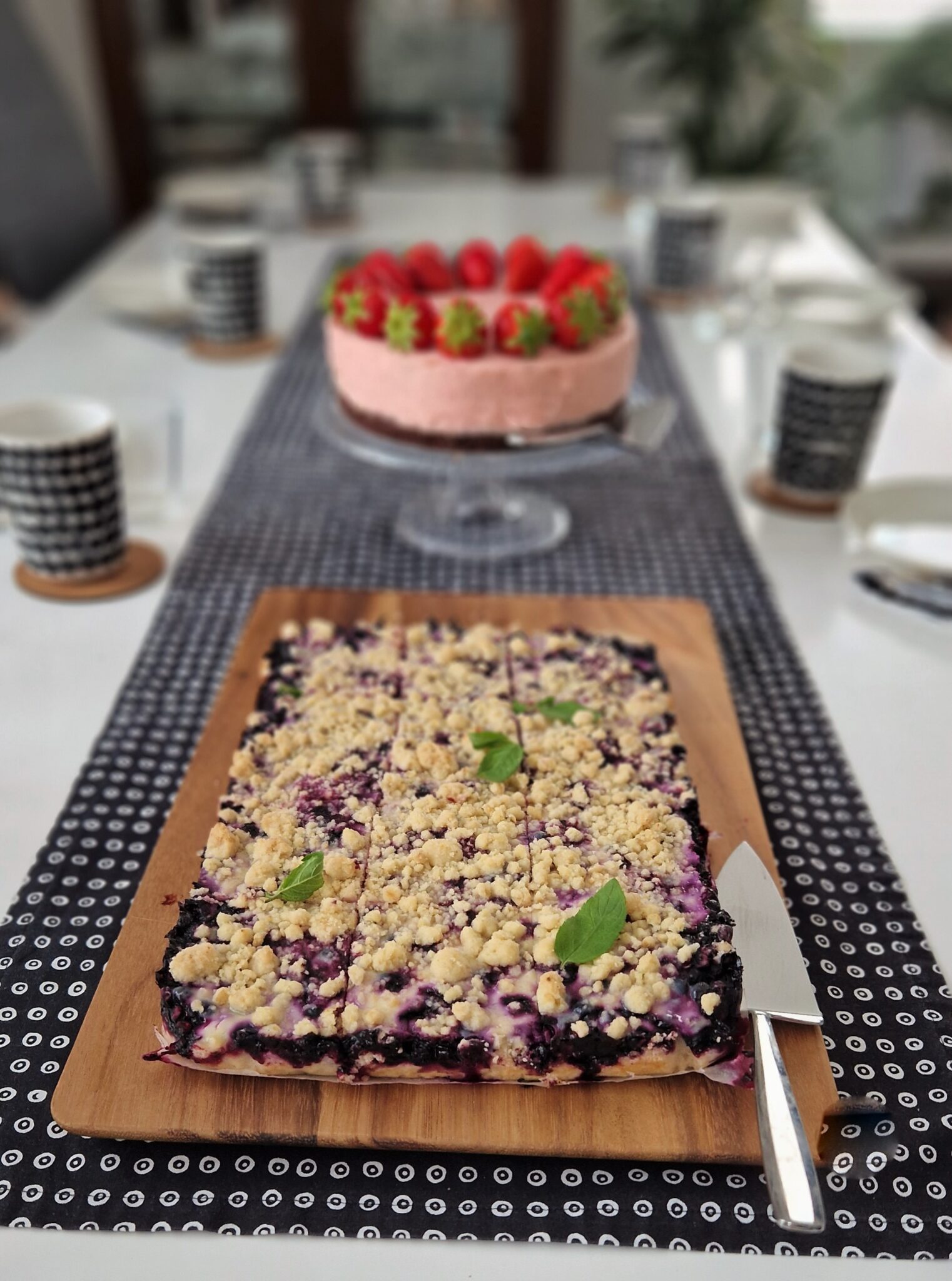 Tämän kesän kohokohta oli viime viikolla, kun saimme koko perheen saman pöydän ääreen yhtä aikaa. Tytär saapui perheineen lomalle Suomeen ja heti seuraavana päivänä kokoonnuimme koko poppoolla perhedinnerille. Ihana oli leipoa jälkiruoaksi sellaisia herkkuja, jotka sopivat ja maistuvat kaikille. Perhepiiriimme on talven aikana laajentunut ja nyt meillä on kaksi vegaanista ruokavaliota noudattavaa. Vegaanisia ohjeita on siis luvassa jatkossakin.