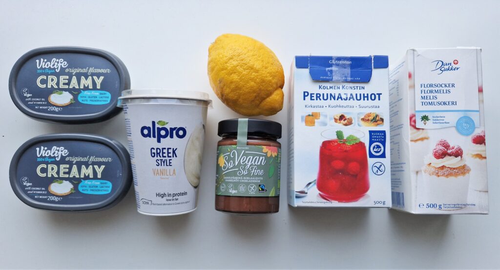 1 rasia (= 200 g) vegaanista tuorejuustoa, Violife