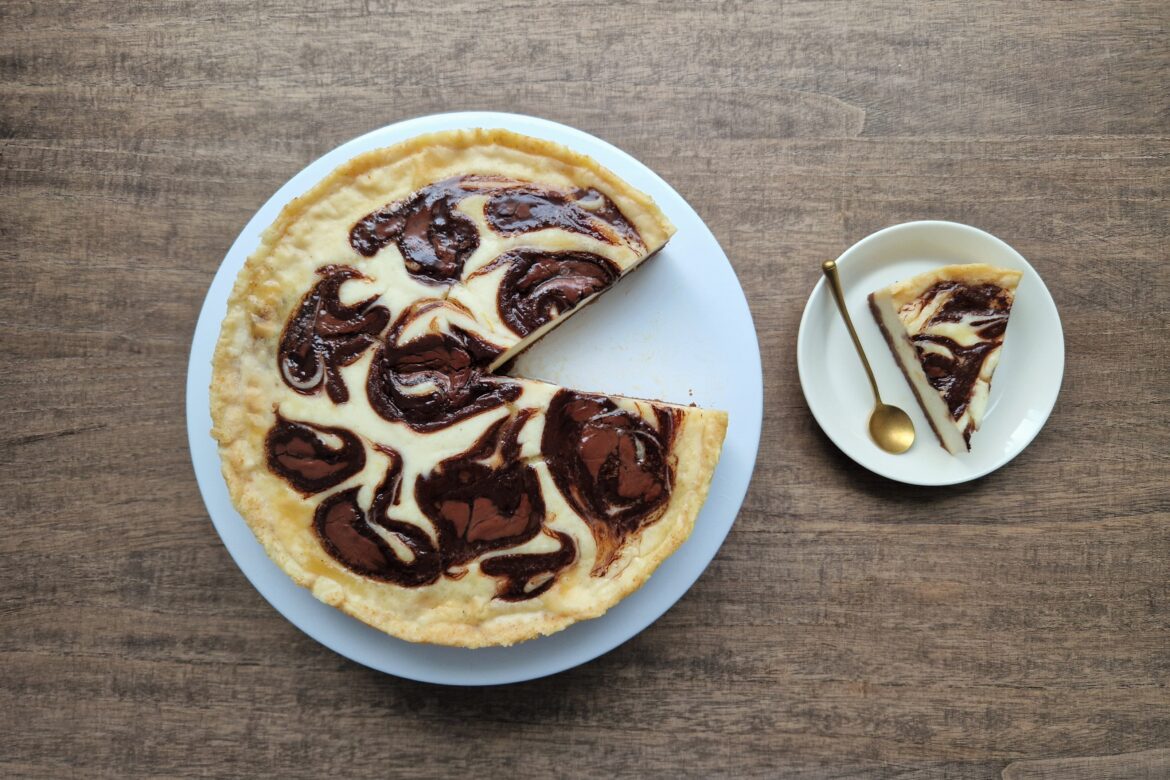 Pehmennä hasselpähkinä-suklaalevitettä, joko vesihauteessa tai mikroaaltouunissa. Nosta ruokalusikalla levitettä nokareiksi juustokakun pinnalle. Vedä veitsellä nokareiden halki pysty- ja vaakasuuntiin niin, että pinnalle muodostuu pyörteitä.