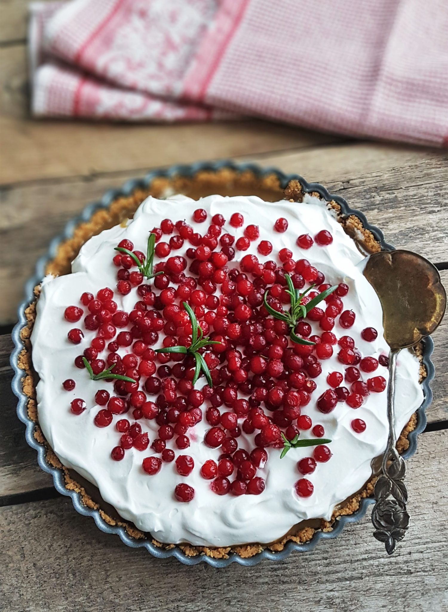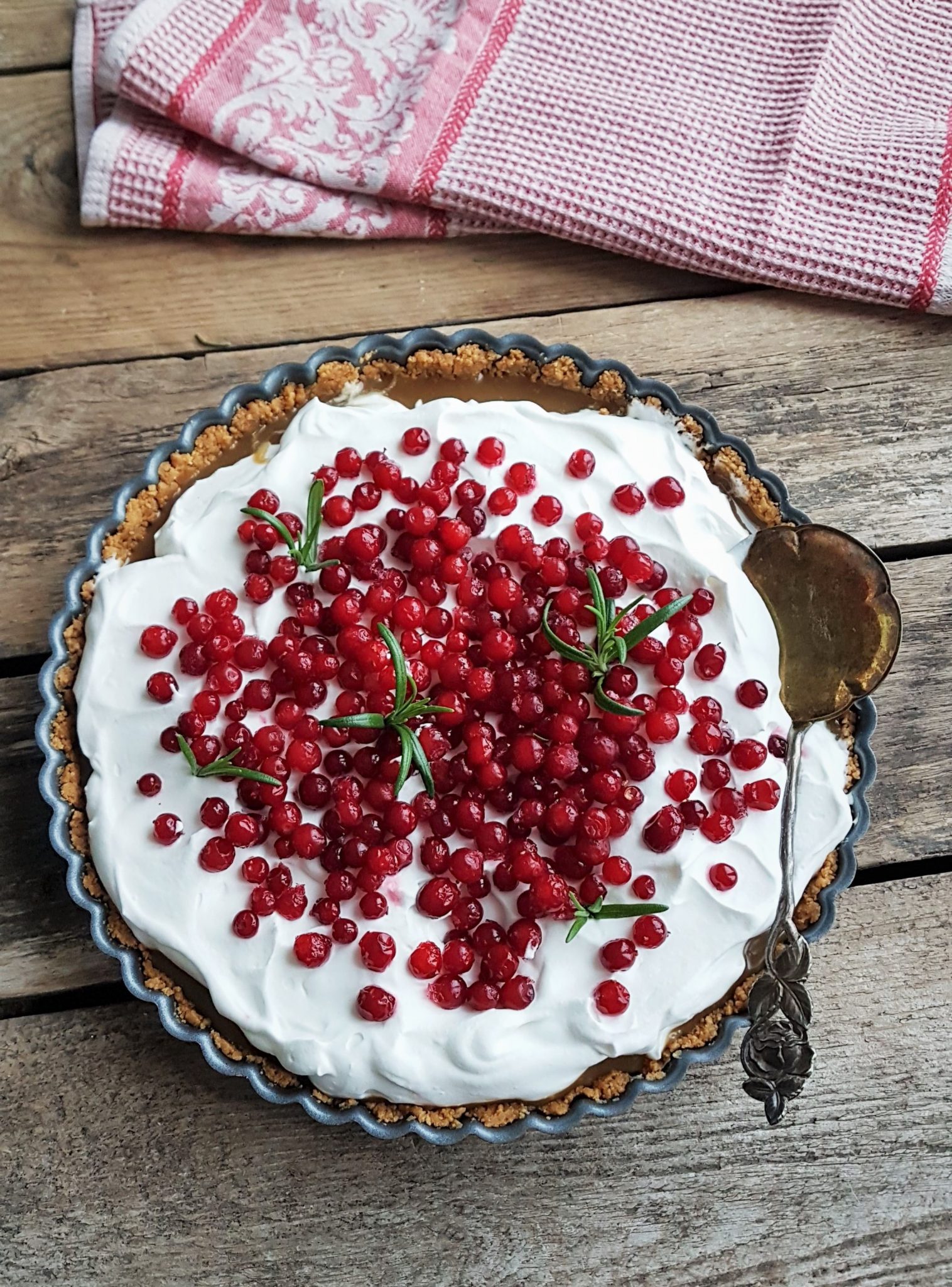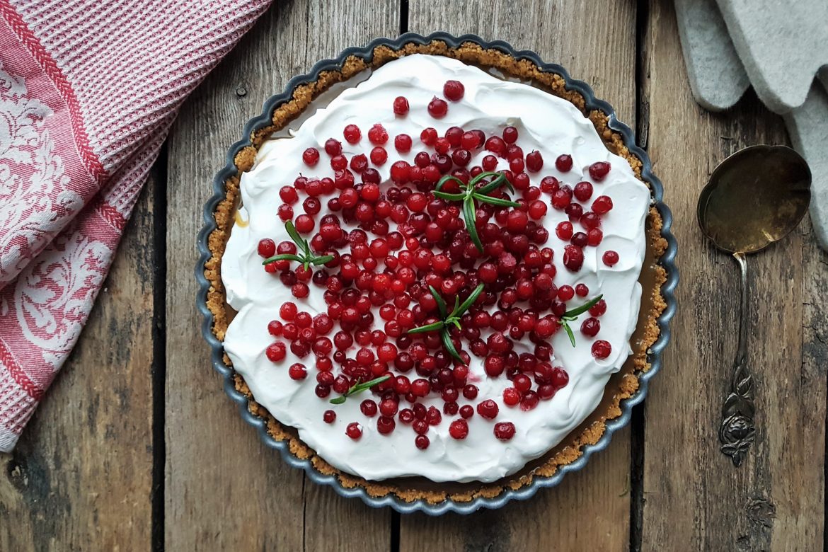 Jos haluat puolukkaisemman ja pirteämmän version, voit laittaa puolukoita myös keksimurupohjalle ennen kinuskia.