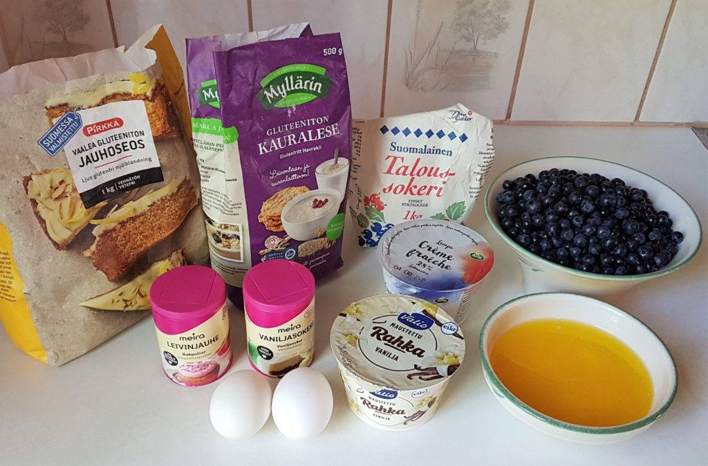Tästä tuli uusi suosikki! En varmasti ole koskaan syönyt näin hyvää mustikkapiirakkaa. Perheen mielipide oli, ettei uskoisi gluteenittomaksi kun on niin hyvää 🙂 Tuskin tarttee tehdä tulevaisuudessa muulla ohjeella.