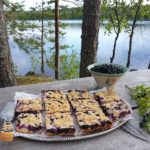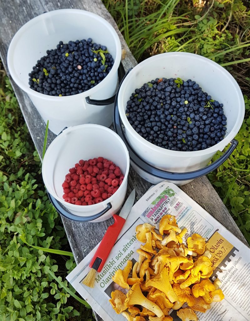 Viimeinen lomaviikko alkaa olla lopuillaan, mutta onneksi viikonloppuisin on mahdollisuus käydä mökillä. Metsävadelmia kypsyy koko ajan lisää ja mustikkaa riittää. Odotan innolla myös edessä olevaa sienisesonkia sekä puolukka- ja karpaloaikaa. Ja pitänee nuo viinimarjatkin kerätä…