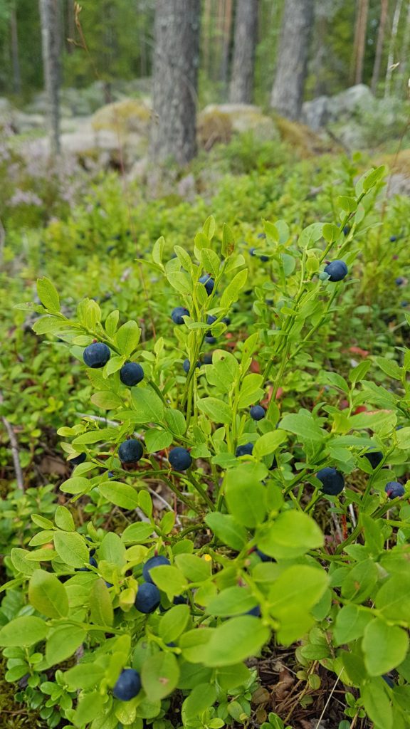 Viime päivät ovat menneet kirjaimellisesti metsässä. Joka päivä on tullut käytyä keräämässä mustikoita, metsävadelmia ja sieniä. Myös lakkaa ja metsämansikoita olen löytänyt. Mustikoita on tänä vuonna erityisen hyvin, ainakin täällä mökkimaisemissa Itä-Suomessa.