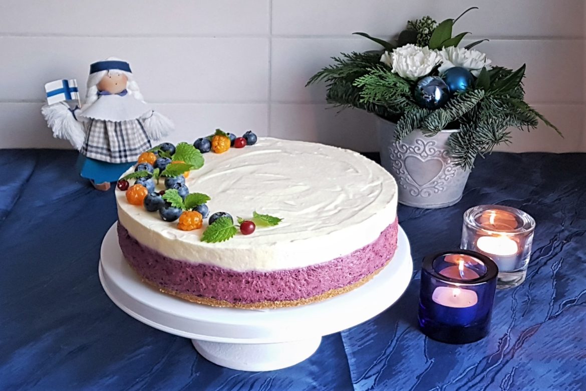 Miten sinä juhlistat itsenäisyyspäivää? Aiotko leipoa jotain? Meillä itsenäisyyspäivän vakiokakku on mustikka-valkosuklaajuustokakku, joka koristellaan vähän eri lailla eri vuosina.