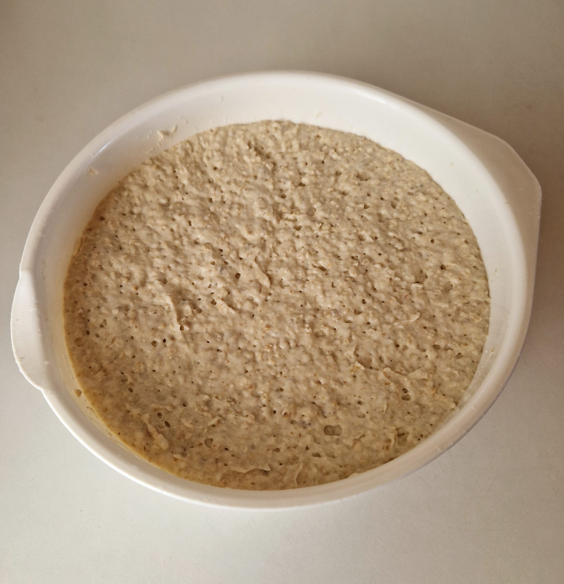Peitä taikinakulho kelmulla. Anna taikinan kohota 12–20 tuntia huoneenlämmössä.