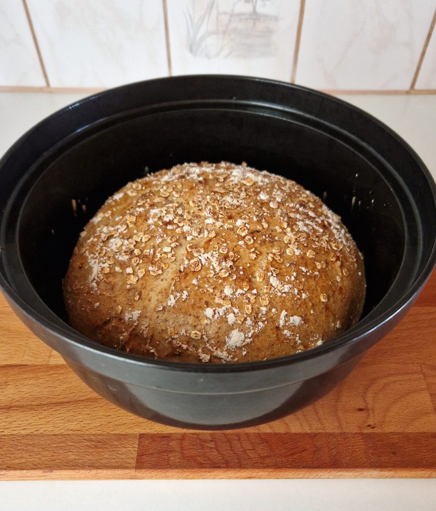 Toiveiden mukaisesti leivoin pataleivän perusaineista, Semperin hienosta ja karkeasta gluteenittomasta jauhoseoksesta. Lisäsin myös gluteenittomia kaurahiutaleita antamaan rouheutta ja makua leipään. Jos et käytä gluteenitonta kauraa, voit korvata sen tattari- tai hirssihiutaleilla.
