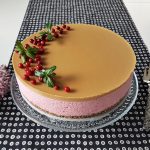 Täydennys 3.11.2022 Lisäsin täytteeseen yhden liivatteen. Nyt täytteessä on aiemman neljän liivatteen asemasta viisi liivatetta. Juustokakun rakenteesta tulee näin tukevampi ja kauniimmin leikkaantuva, varsinkin, jos kakku on pitkään pöydässä.
