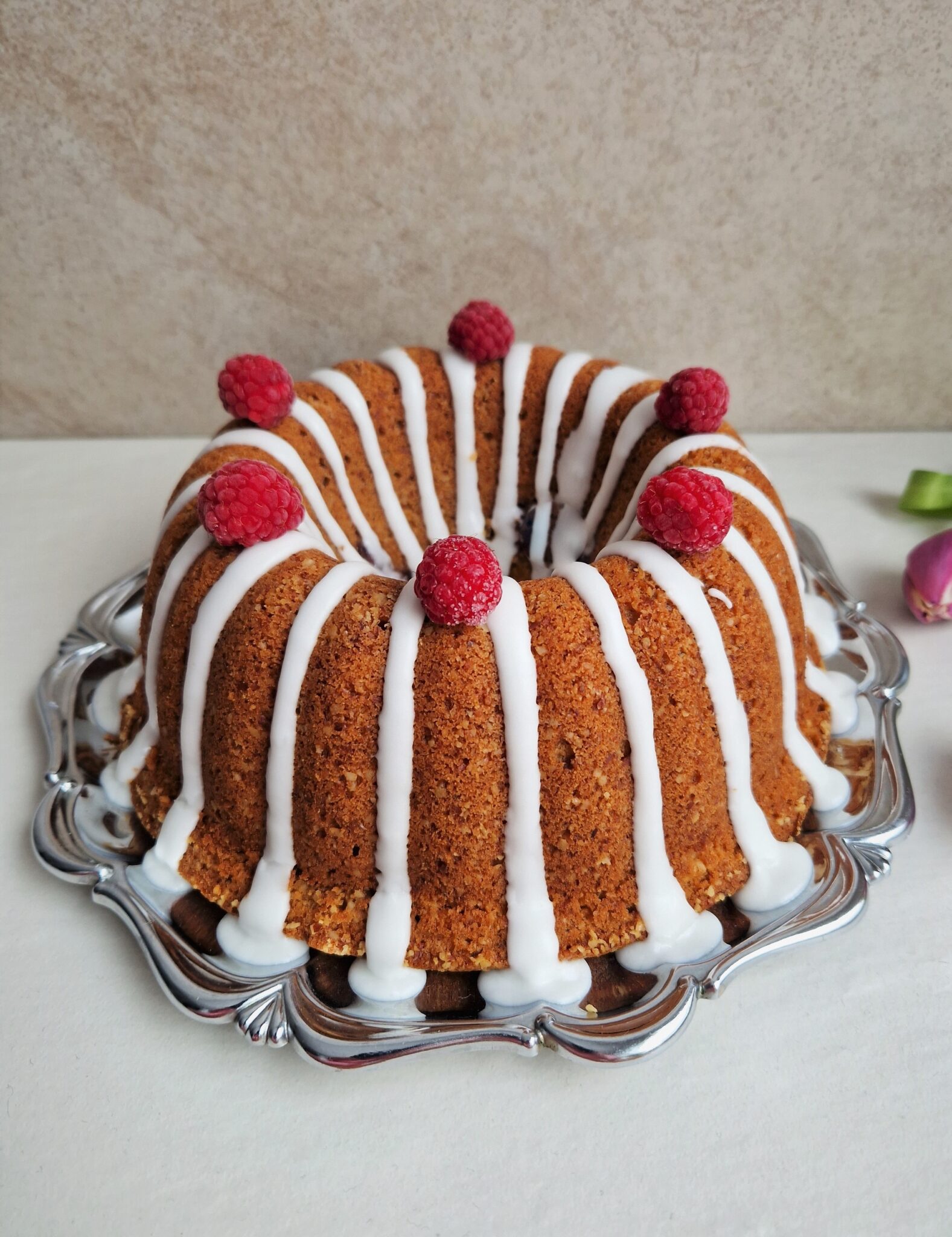 Viimeistele kakku vadelmilla ennen tarjoilua.