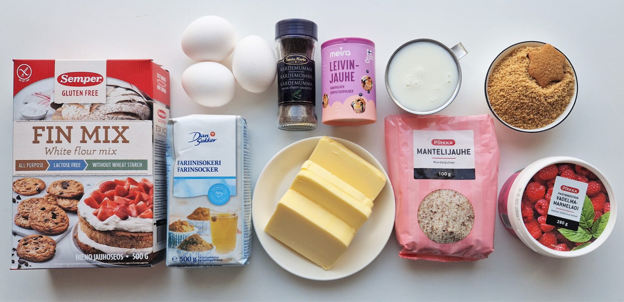 Viime aikoina somessa on vilahdellut kuvia Runebergin kahvikakusta, joten itsekin innostuin kokeilemaan Runebergin torttujen kakkuversiota. Yhteishyvä-lehdestä bongasin herkulliselta kuulostavan ohjeen. Mehevän näköinen Runebergin kahvikakku kätki sisälleen vadelmamarmeladia. Eiku muuttamaan ohjetta gluteenittomaksi.
