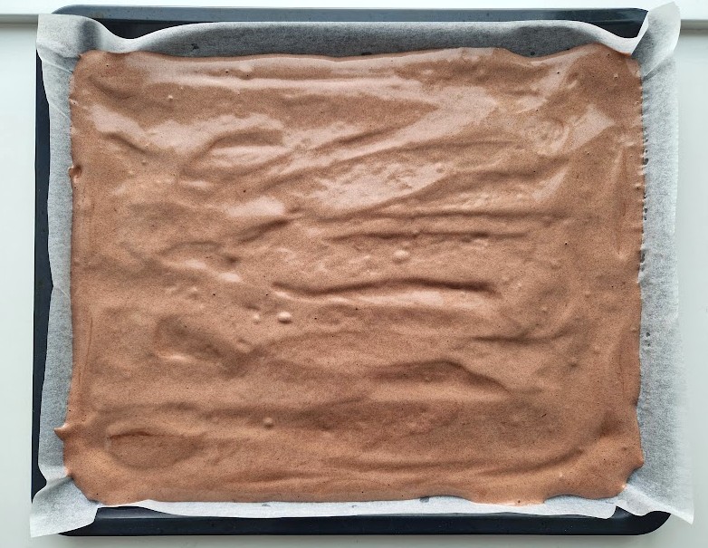 Levitä taikina leivinpaperin päälle uunipellille tasaiseksi levyksi. Paista noin 10 minuuttia uunin keskitasolla.