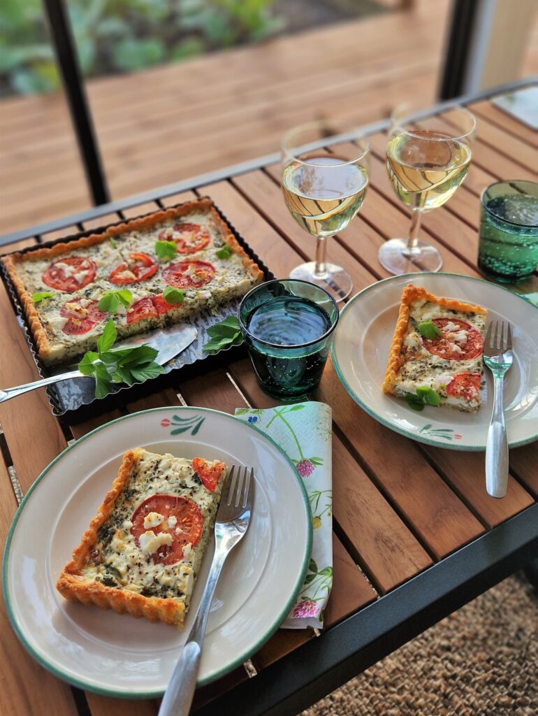 Paista piirakkaa noin 25 minuuttia tai kunnes täyte on hyytynyt ja reunat ovat kauniin ruskeat.