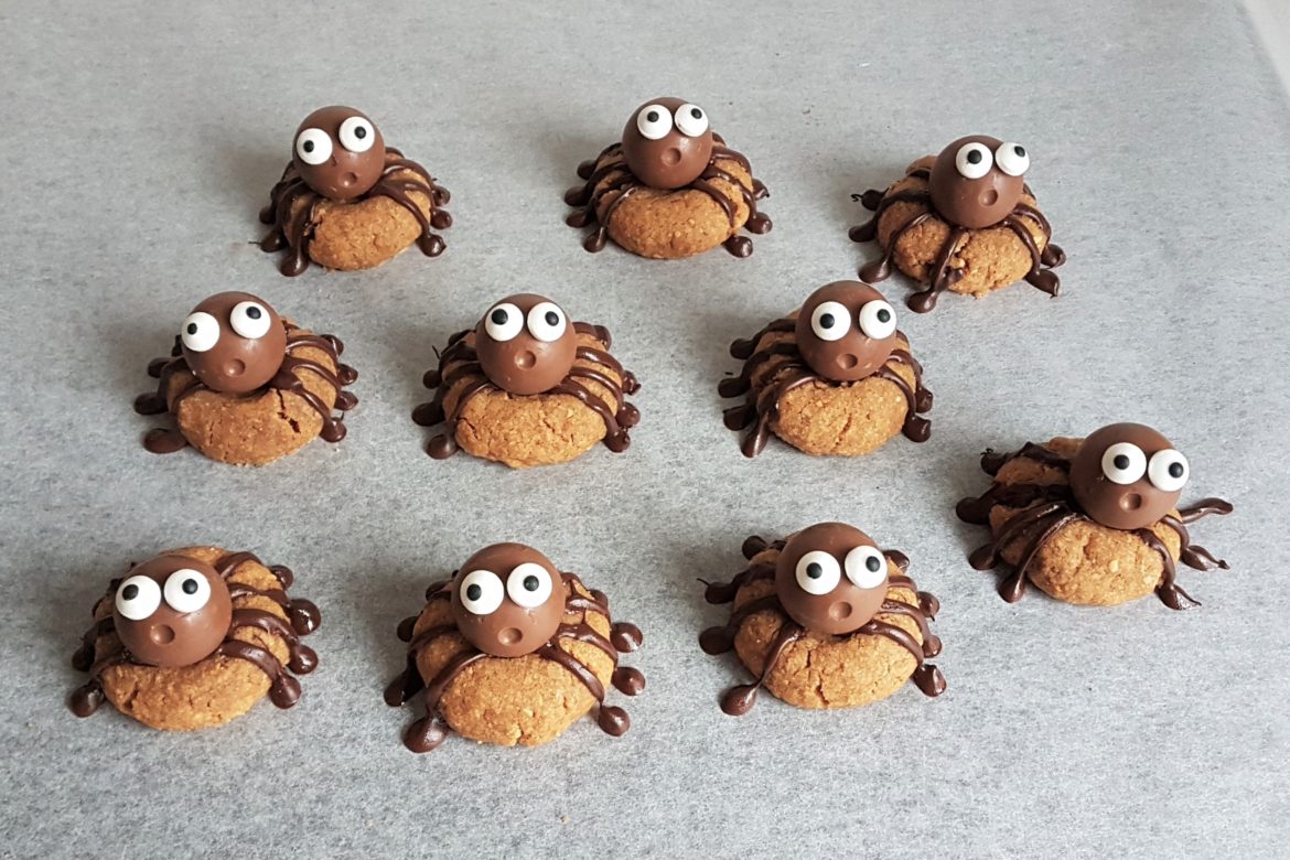 Gluteenittomista maapähkinäkekseistä saat näppärästi tehtyä hämähäkkikeksejä halloween-juhliin. Nämä keksit kyllä hurmaavat kaikki vieraat ja sopivat myös lasten synttärikutsuille.