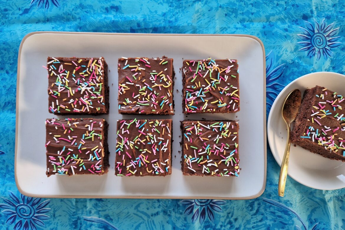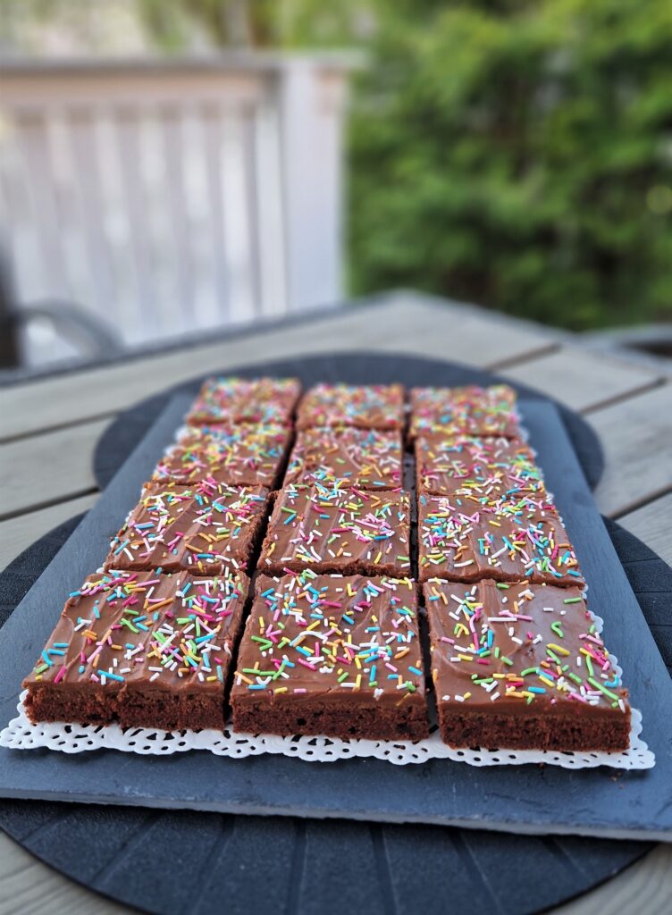 Mokkapalat herkuteltiin porukalla pihatalkoissa. Taas tuli kommentteja, ettei kyllä arvaisi gluteenittomaksi ja vegaaniseksi 🙂