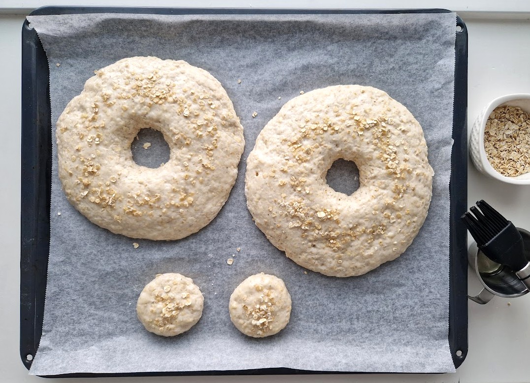 Anna reikäleipien kohota 20–30 minuuttia liinan alla lämpimässä paikassa.