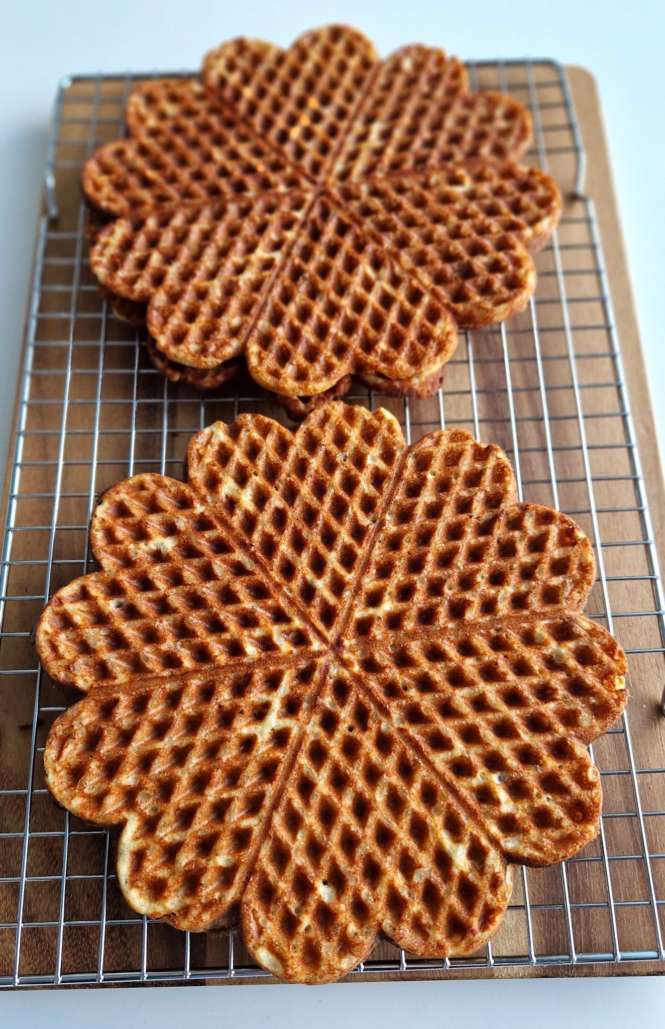 Anna vohveleiden vähän jäähtyä leivinritilän päällä.