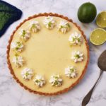 Koristele piirakka ennen tarjoilua limellä ja kermavaahdolla. Vatkaa kerma vaahdoksi ja mausta sokerilla. Pursota pieniä ruusukkeita piirakan pinnalle ja ripottele niiden päälle limen raastettua kuorta.