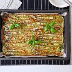 Kaada täytteen päälle kermamunaseos tasaisesti. Ripottele pinnalle parmesaaniraaste.