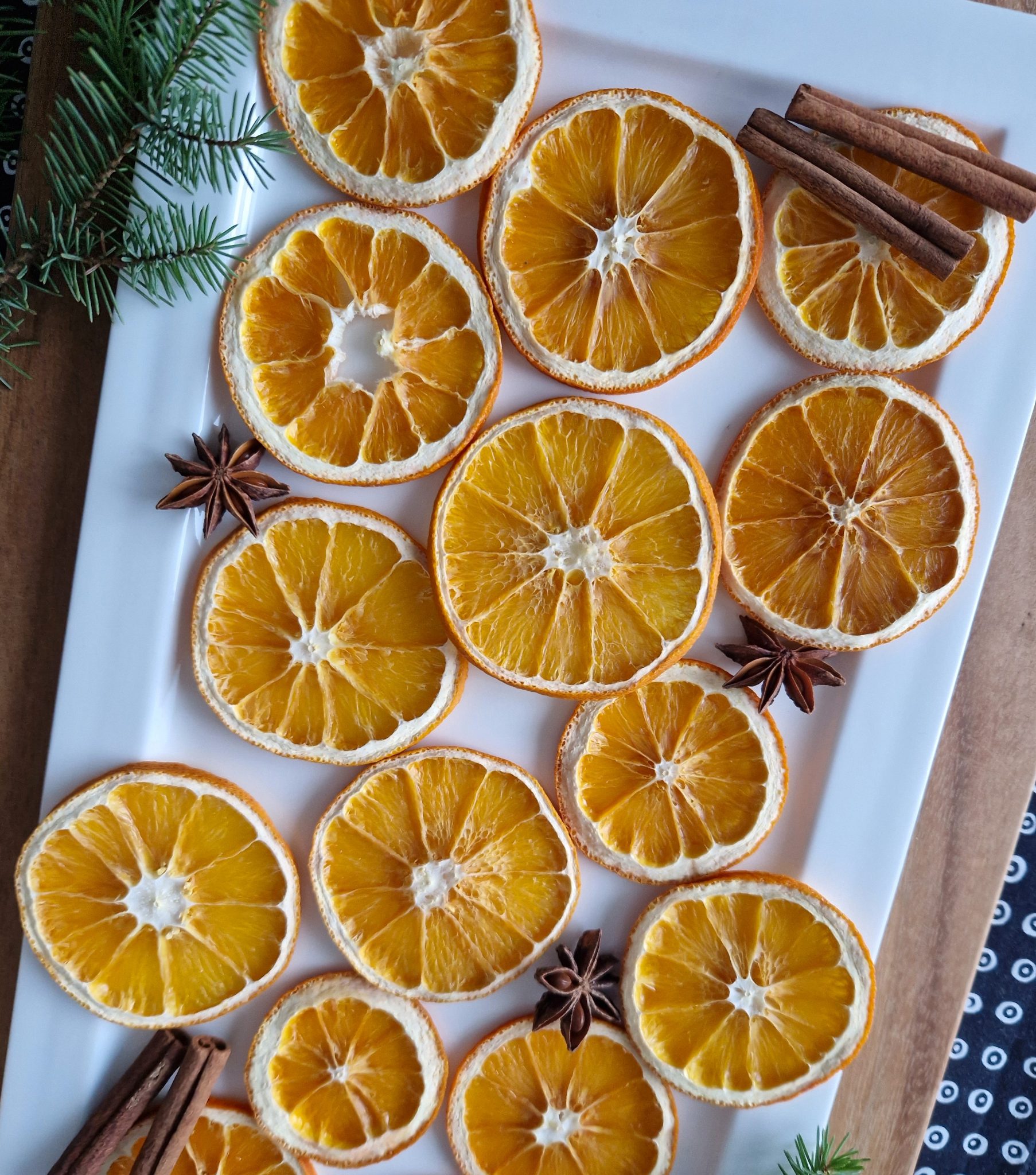 Kuivatut appelsiiniviipaleet ovat kauniita koristeita joulupöydässä, havukranssissa tai lahjapaketin päällä. Voit hyödyntää kuivattuja appelsiiniviipaleita murskattuna myös leivonnassa; maustamaan kakku- ja pikkuleipätaikinoita tai joulumakeisia.