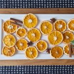 Laita uuni lämpenemään 70–80 asteeseen. Pese appelsiinit ja viipaloi ne terävällä veitsellä 0,5 cm:n viipaleiksi. Nosta appelsiiniviipaleet talouspaperin päälle ja painele päältä kevyesti toisella talouspaperilla. Tällöin enin kosteus imeytyy viipaleista talouspaperiin ja kuivaminen nopeutuu.