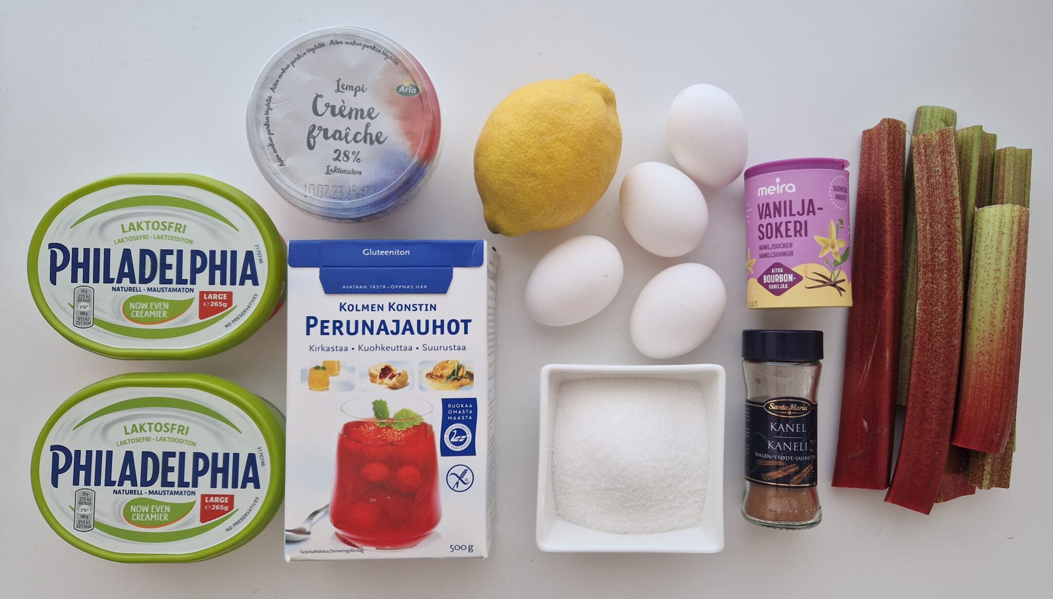 Hups, ohjeesta on jäänyt pois tuo maininta. Ripottelin raparperipalat juustokakun pinnalle ennen uuniin laittamista. Täydennän asian ohjeeseen. Kiitos kun huomasit asian ja kerroit 🙂