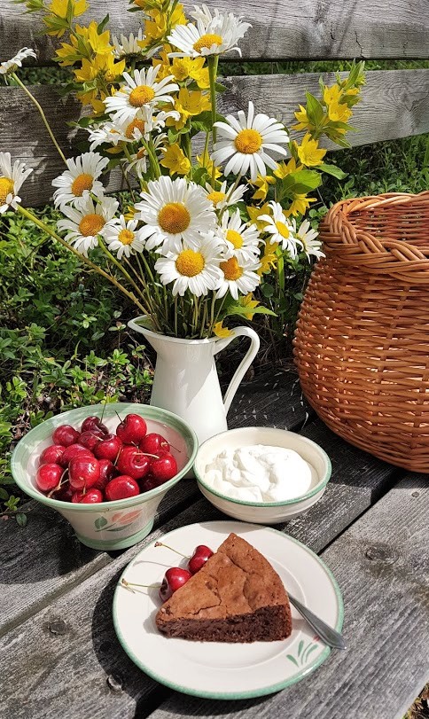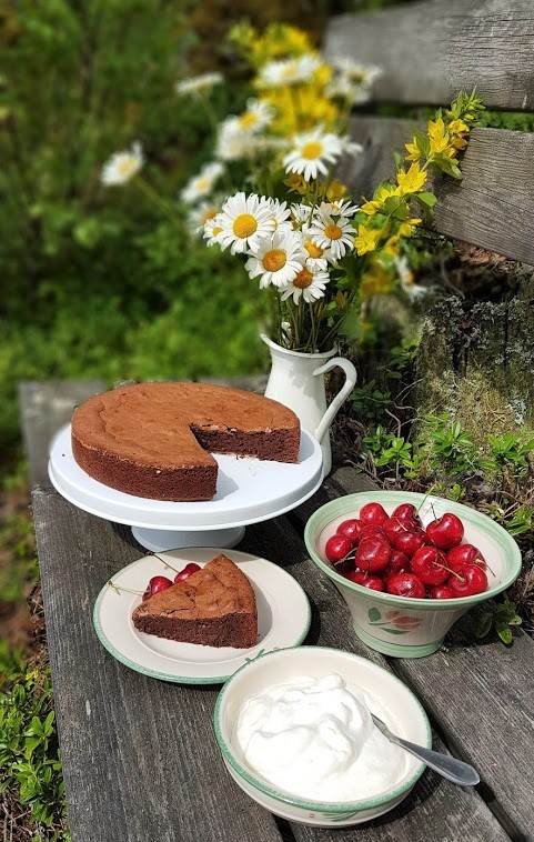 Kuluneen kesän vakiotarjottava mökkivieraillemme oli mutakakku eli mudcake. Mutakakku on nopea ja helppo tehdä, eikä sitä tarvitse kauan uunissa paistaa. Kakku saa jäädä keskeltä hieman tahmaiseksi. Leivoin ja kuvasin tämän mutakakun jo kesällä, mutta silloin en ehtinyt ohjetta kirjoittamaan. Parempi myöhään kuin ei milloinkaan. 😊 Voin kyllä luvata, että tällä gluteenittomalla ohjeellani tulee taivaallinen versio mutakakusta!