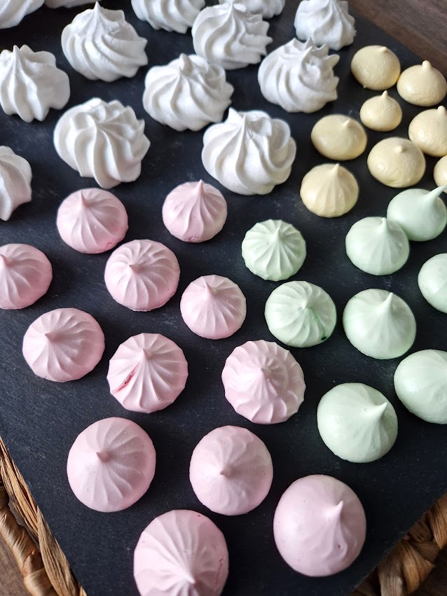 Olen tosi tyytyväinen siitä, miten hyvin kokeilu sujui. Jee, kannatti testata! Huolellinen vaahdottaminen on avainasemassa. Pienet värilliset marengit säästän vegaanisen pääsiäiskakun koristeiksi. Seuraavaksi testaan vegaanisen sitruunatahnan eli lemon curdin valmistusta. Pääsiäiskakkua varten.
