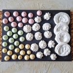 Kokeilin myös marenkivaahdon värjäämistä pastaväreillä. Hyvin toimi sekin, vaikka jäljelle ollut marenkivaahto odotti yli kaksi tuntia ennen värillisten marenkien tekemistä. Tosin vaahto ei ollut enää niin vahvaa, että olisi saanut kauniit pursotusjäljet.